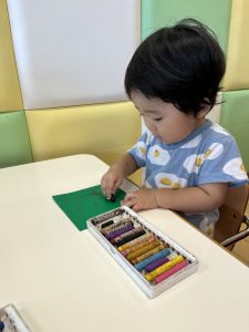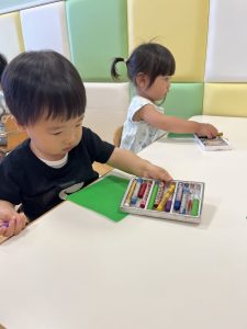 グルグルと折り紙いっぱいに描く子もいれば色々なカラーのクレヨンを使ってカラフルに描いたり…