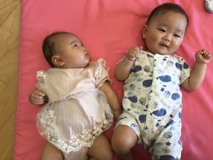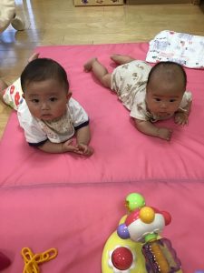 お友だちと一緒に転がったり、お喋りはまだできませんが声を出しながら