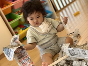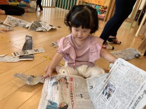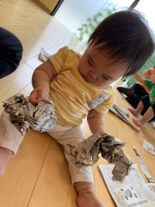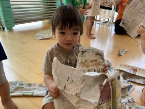 今週は新聞紙遊びをしました📰