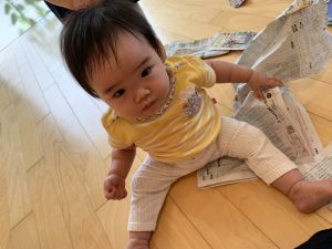 少しずつ慣れてくると新聞紙に自分で手を伸ばして触ってみたり、