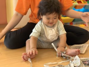 今週はいちご組さんと一緒に新聞紙遊びをしました📰