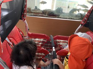 環境科学センターに着くと泳いでいるお魚をじっと見て不思議そうな表情をしたり、