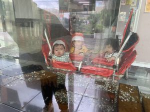 久しぶりの戸外に喜びながらバギーに乗るもも組さんのお友だち👧🏻👦🏻💕