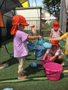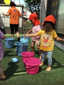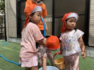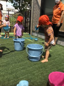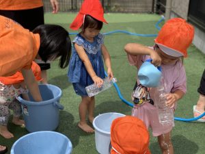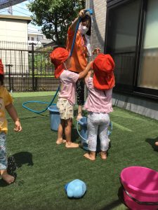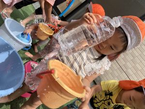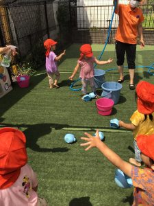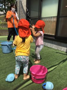『水遊びするよ〜』と伝えると『やったー!』と喜ぶ子どもたち!!!