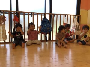 保育士と関わりながらゆったりと遊んでいた子どもたちです。
