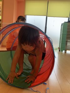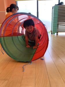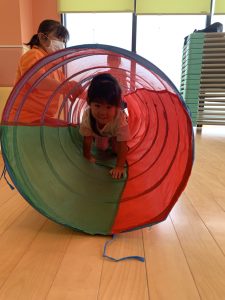 トンネル遊びでは「次誰が出てくるかなぁ」「〇〇ちゃんでした」と