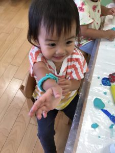 保育士と一緒にする事で出来るようになり、嬉しそうな表情を見せています。