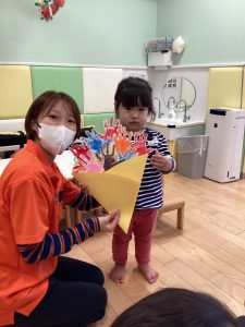 みんなも手型の花束を見て「〜くんの手もあるよ!」と指差しで教えてくれました。