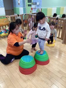 今では登園すると自分から進んで靴下を脱いだりと準備をしていたり、