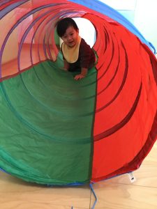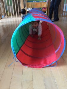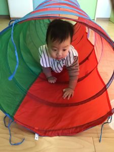 お部屋でトンネル遊びを楽しんでいるもも組さん。