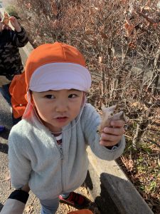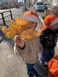 大きな落ち葉を発見して『みて〜かおくらいおおきい!』と言ったり
