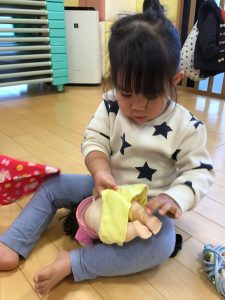 いちご組はお人形遊びやおままごと遊びが流行っています☺️