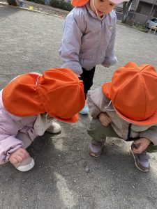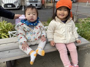 公園のベンチでも、もも組さんといちご組さんのお友だちが✨