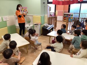 ひな祭りの紙芝居が始まると真剣に見ていました🥰