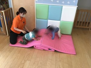 他にも普段使っている玩具を使ったり、マットの丘で遊んで元気な姿を見せていました☺️