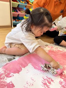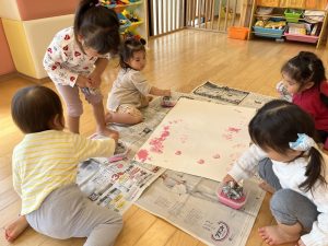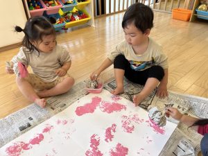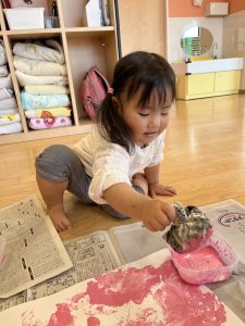 中には新聞紙をヘラのように塗りつけて楽しむお友だちも🖌‼︎