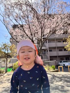 帰りがけ、近くの公園に桜が咲いていたので写真を撮って帰るりんご組さん!🌸