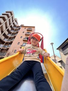 満面の笑みで滑り台を下りていました⛲️🌸