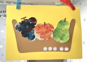 今週は9月の製作「フルーツバスケット」を作りました🍇🍎🍐