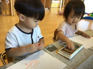 絵の具の下から他の色が出てくるのが不思議ないちご組さんは、