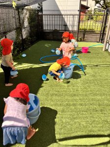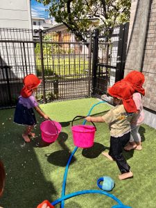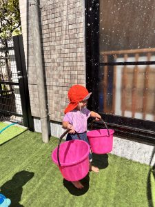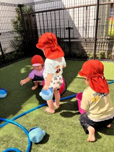 いろんな水遊びの遊び方を発見できて、お友だちともたくさん笑い合って