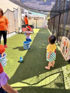 園庭の周りに生えている草にお水をあげて『いっぱいのむんだよー』と声をかけてあげたり