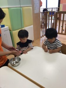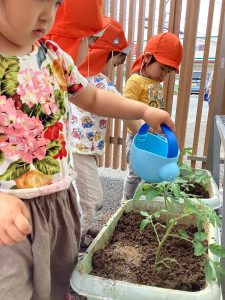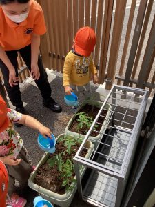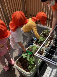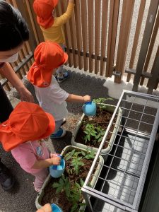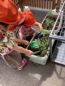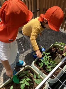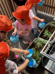 「おおきくなーれー」と早くも出来るのが楽しみなりんご組さんです🤭