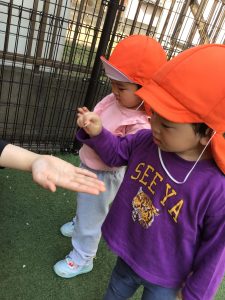 くすぐったいよ〜と身体をよじって耐えようとしているお友だちもいました🙈
