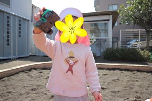 園庭のそばに梅の木があり、花びらが園庭にたくさん落ちていたので子ども達は大はしゃぎ🌸