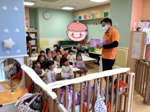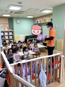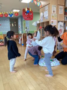 まずは節分の絵本を読んで、お歌を歌います♪