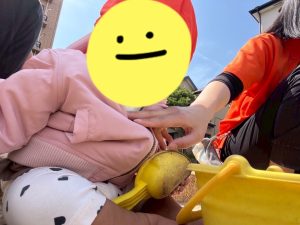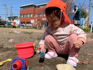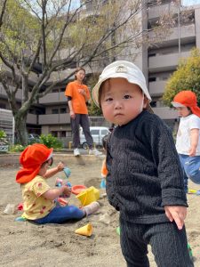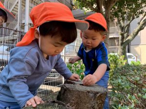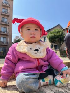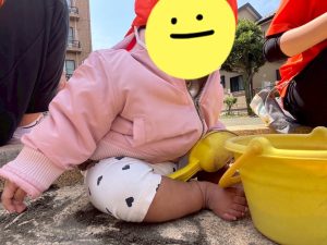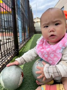 園庭ではハイハイで園庭の端まで大冒険💪に出掛ける園児や