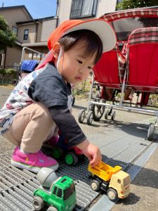 車のおもちゃに砂場の砂を積載して、『ぶーん!』と公園中を走り回ったり、