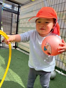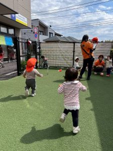 日中は温かい日が増え、戸外に出て身体を動かすことを楽しんでいるりんご組のお友だち!