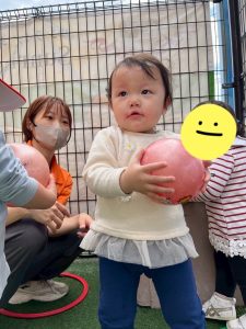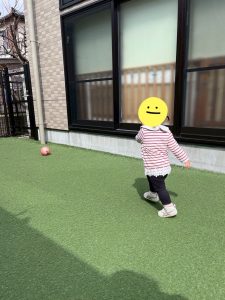 保育士に誘われて、ボールを蹴り合って遊ぶ姿も⚽️