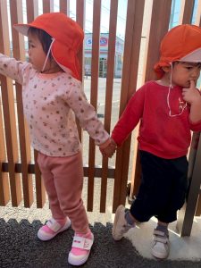 戸外に出る準備をしていると『〜ちゃん、〜くん手、繋ごう!』とお友だちを誘う声が聞こえたり、