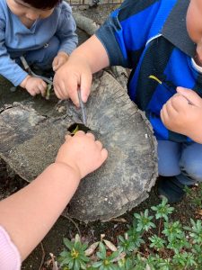 『石じゃなくても木はどう?葉っぱは?』などと話しながら個々に好きなものを集めて