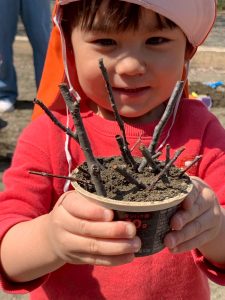 バケツの底を叩いて音楽を奏でる園児もいました🥁