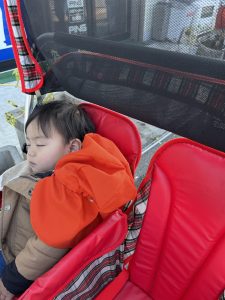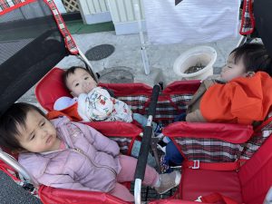 大きな車を指差しながら長い距離も泣く事なくバギーに楽しく乗るもも組さんでした😆✨
