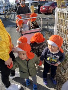 『くるまがくるかもしれないよ!』と声を掛け合って歩こうとしたり、