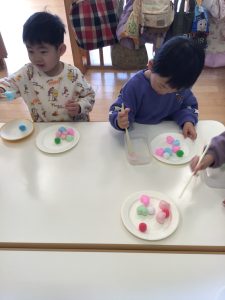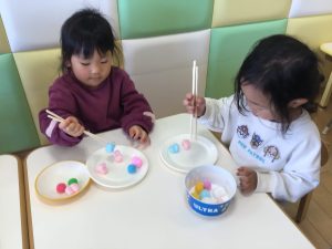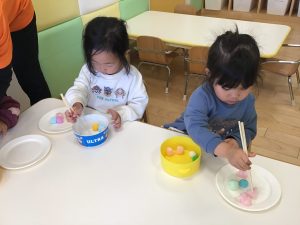 今週は初めてお箸を使った遊びを楽しみました🥢