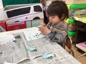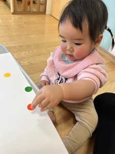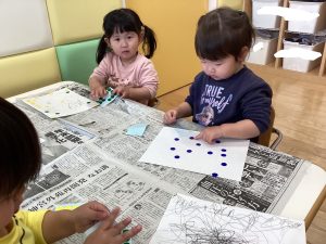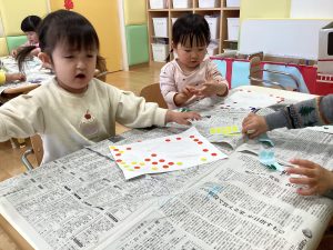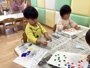 シール貼りではみんな上手に台紙からシールを剥がして、自分の好きな場所に貼って楽しんでいました🤭