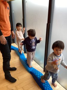 保育士と一緒に手を繋いで渡ったり、壁に手を添えて自分だけで渡ることも出来ました♪