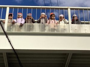 歩道橋の上から見ているとパトカーがやって来たので、手を振ると気づいてくれて、赤色灯を回してくれたので大喜びのりんご組でした🚓