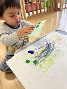 また、お絵描きとシール貼りもしました🖍️