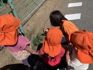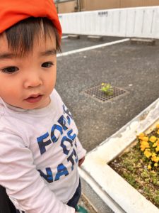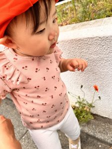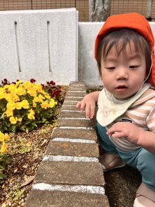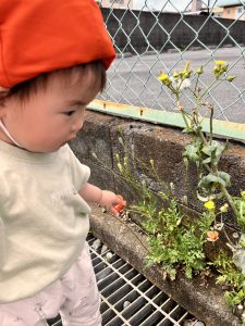 今週は道端の花が綺麗に咲いていて、カートを降りて保育士と手を繋ぎながら、