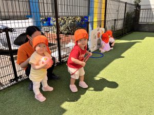 園庭でもボールを使って投げてみたり、転がったボールを追いかけてみたりして楽しんでいます⚽️