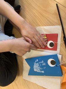 先日スタンプを押したり鱗を両面テープで貼って完成させた鯉のぼり🎏