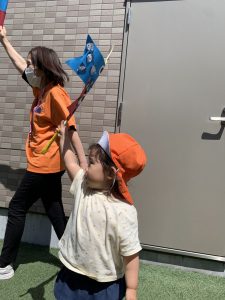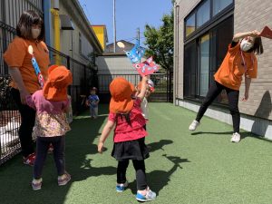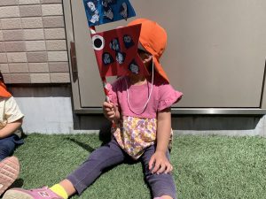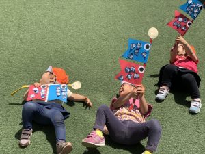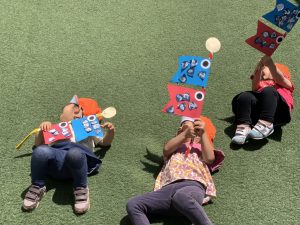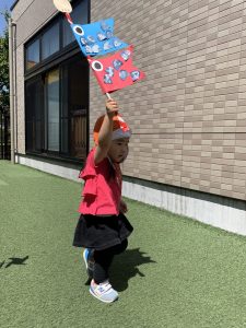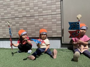 完成した鯉のぼりを持って園庭で遊びました📷✨