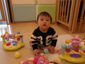 たくさん遊んでいました。つかまり立ちは先生や柵を使って上手に出来るようになってきました![]()