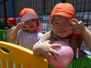 今週は天気が良く、お外でたくさん遊びました。ボールを追いかけたり、投げたりして